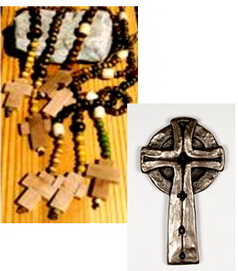 rosaries and prayer beads include the symbol of a small cross and in numerous