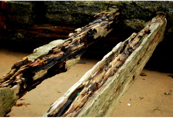 spars, worn by the sea and the weather, almost unrecognisable from the original