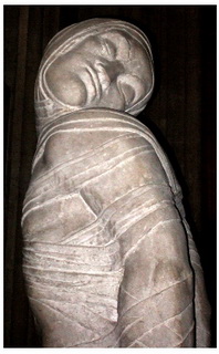 depicting Lazarus, a cloth-bound figure with the head turned looking back